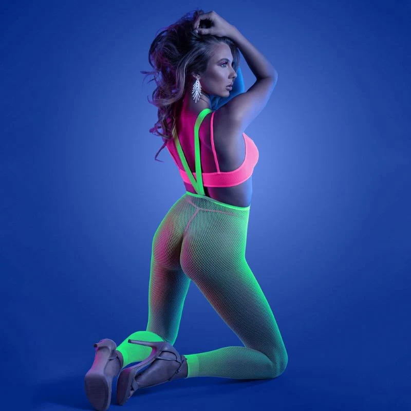 Transform any evening into an extraordinary spectacle with the Glow Come Alive 3pc Suspender Stockings Set. This stunning ensemble combines cutting-edge UV-reactive technology with classic lingerie styling, creating an unforgettable visual experience that commands attention in any dimly lit environment.