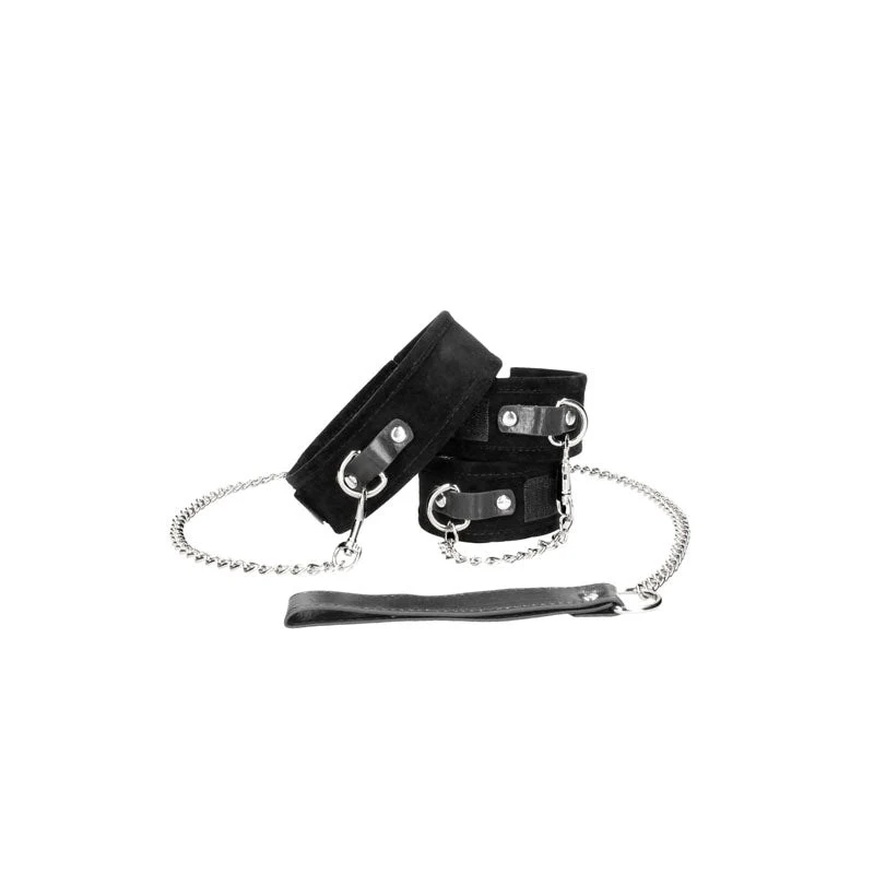Every element of this set has been thoughtfully designed with the user's comfort in mind. The premium suede lining caresses the skin while providing lasting comfort during wear. The collar, measuring 43 cm x 4.7 cm, offers an adjustable fit that adapts to individual preferences, while the matching cuffs (24 cm x 4.9 cm) provide secure yet comfortable restraint.