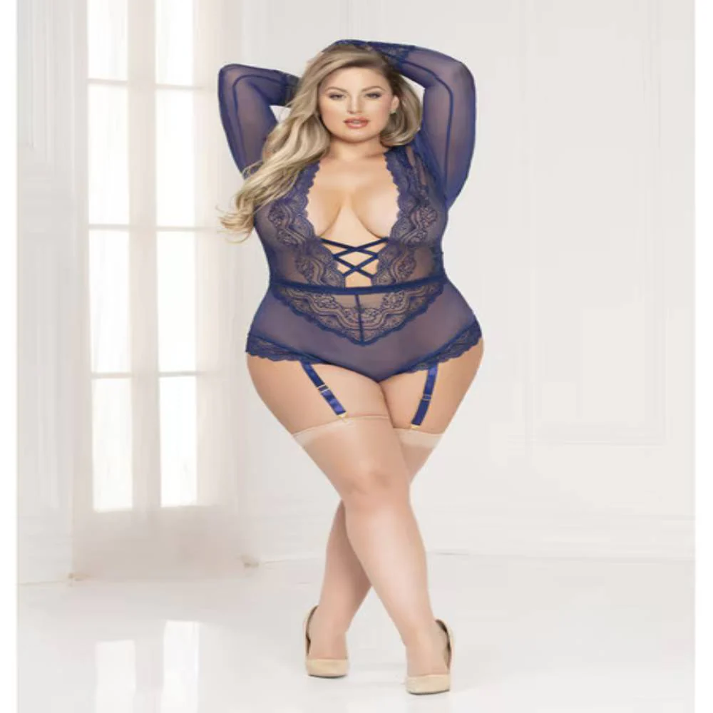 The Secret Affair Teddy features long sleeves made from intricate lace, adding a touch of sophistication to its alluring design. The plunging neckline creates a dramatic focal point, drawing the eye and highlighting your dƩcolletage in the most flattering way possible.